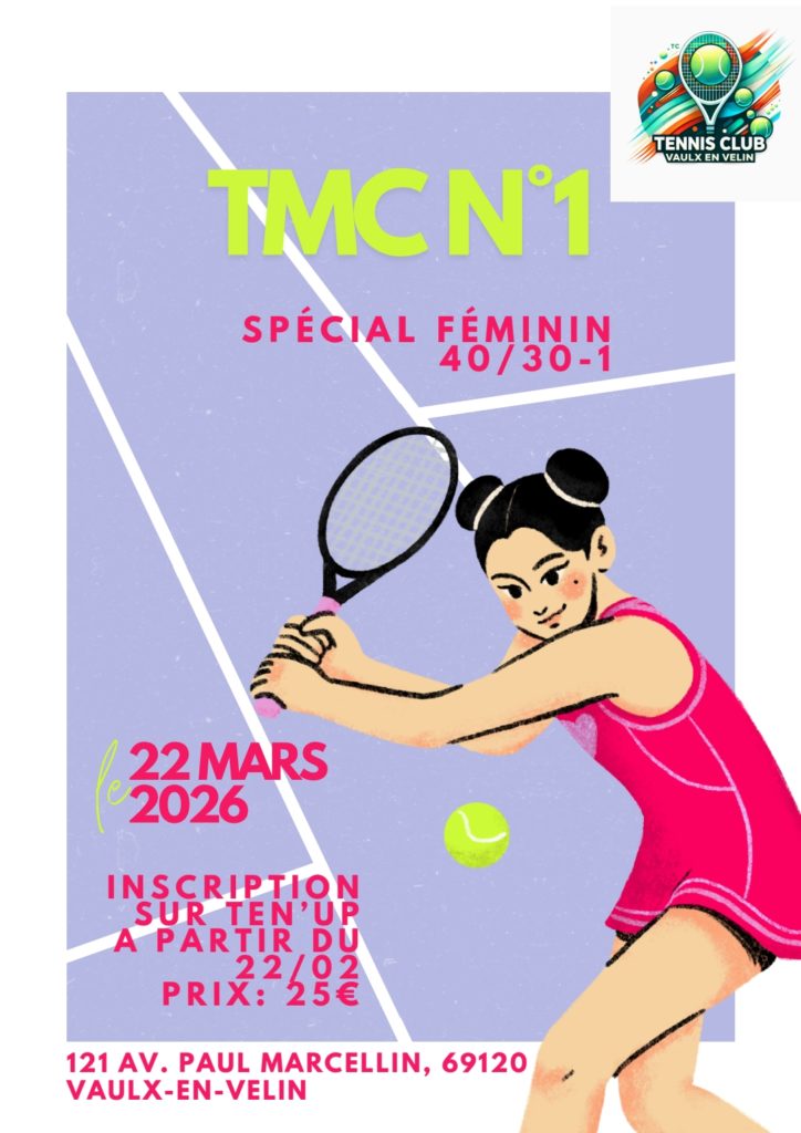 TMC Femmes 4ème série (40-30/1) Publication publiée :11/02/2026 Post category:Non classé Nota : Les inscriptions au tournois sont placées automatiquement sur liste d’attente pour une organisation optimale. Une confirmation sera, en cas de retenu, envoyée 1 à 2 semaines avant. Vous devriez également aimer Tournoi orange 8-10 ans Meyzieu 2020 24/02/2020 TMC Messieurs 4ème série (40-30/1) 30/01/2026 Félicitations à nos équipes 17/05/2023